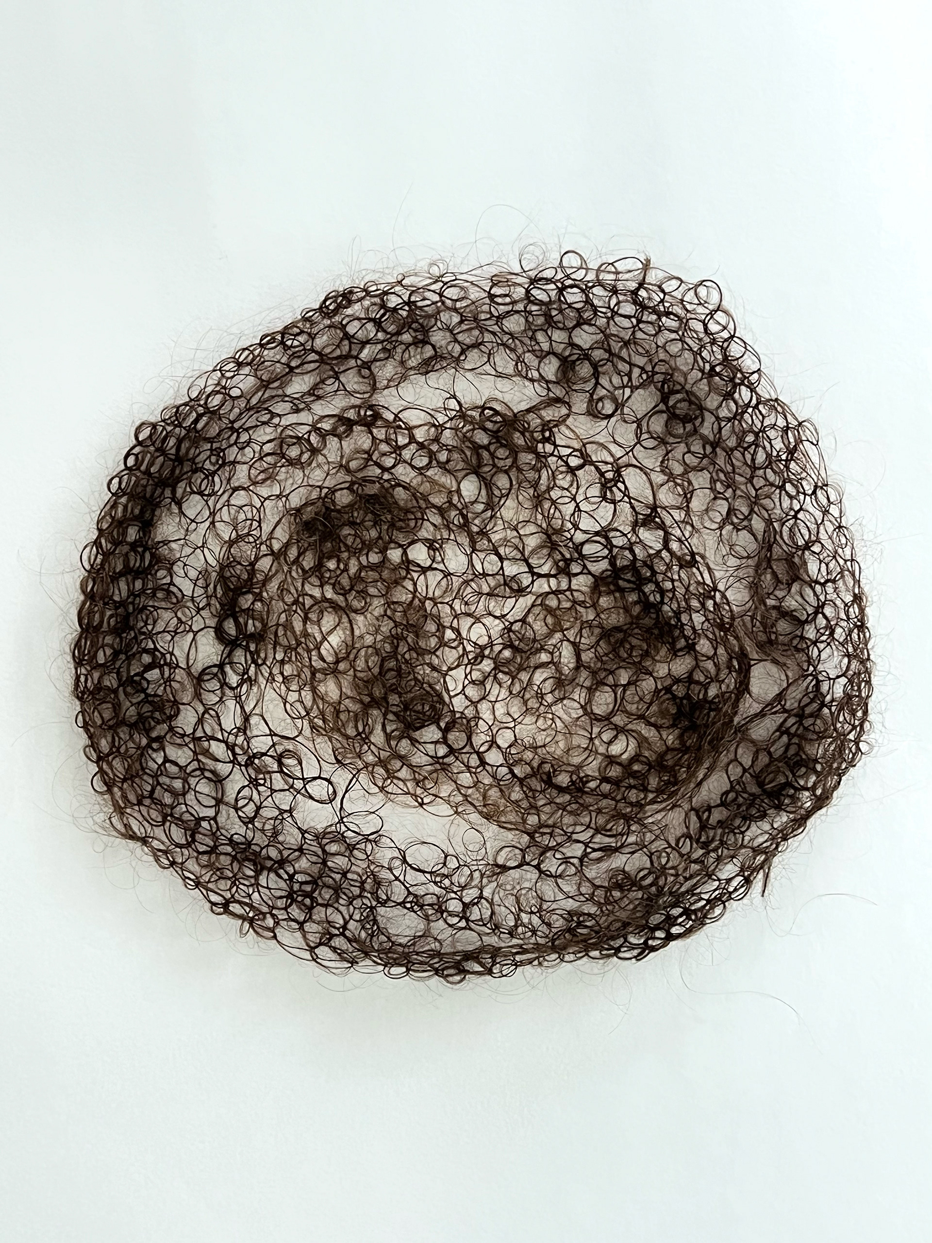 2025, hair, glue, fabric, epoxy , 10*12 in