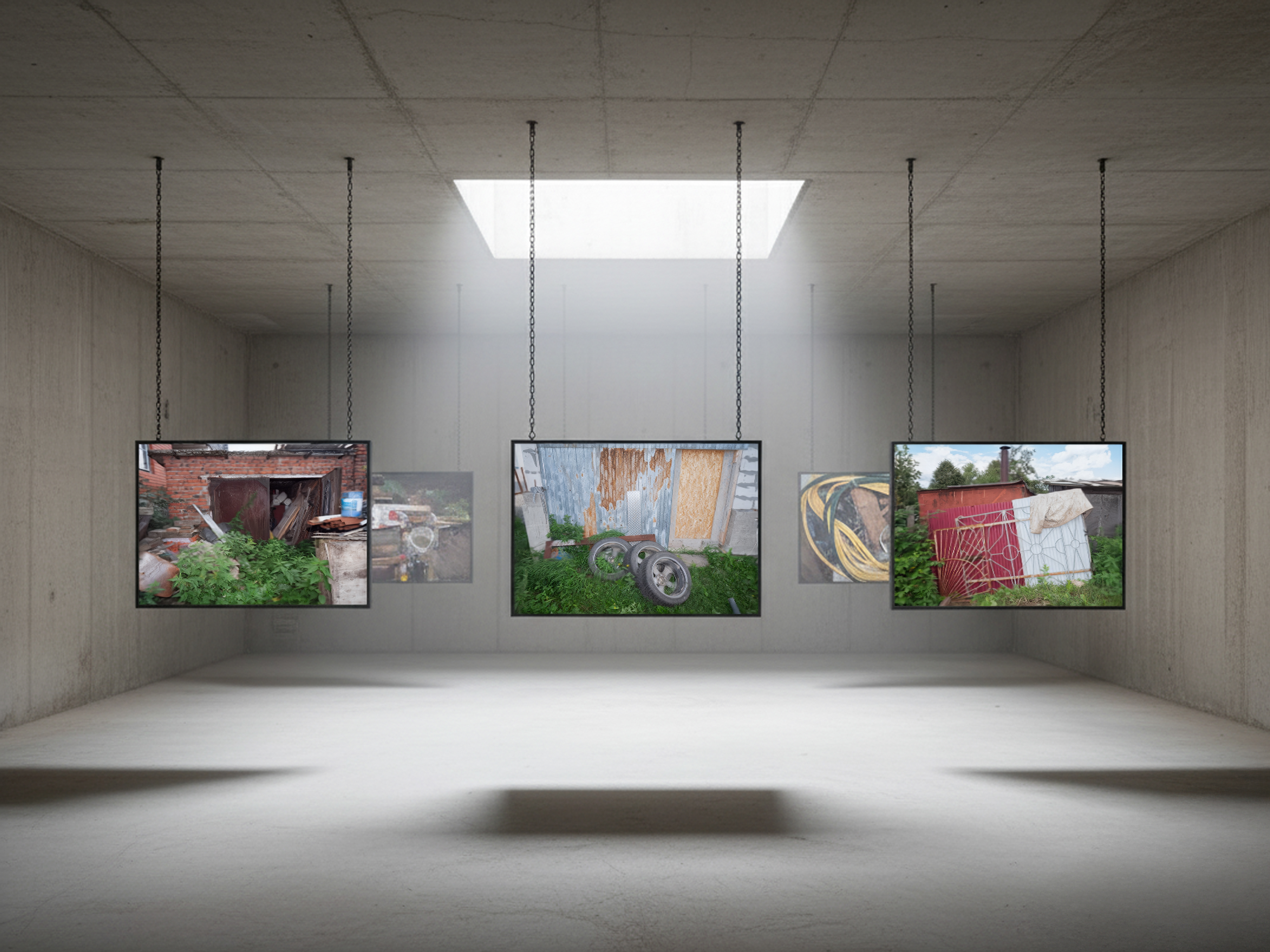 This zone gathers works around disappearance, monumental presence, and the street as ecosystem.