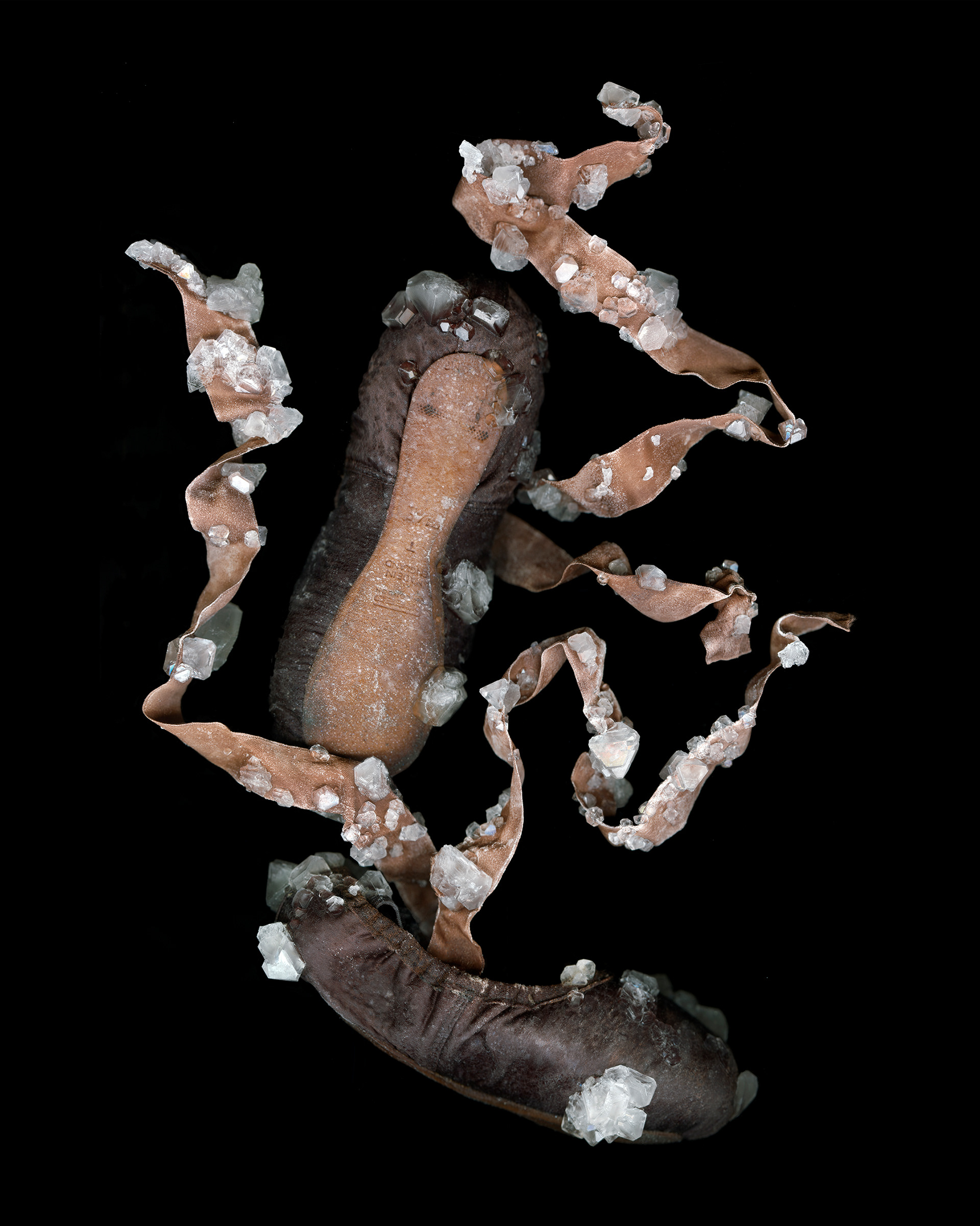 Alice Potts’s Breaking Pointe “PERSPIRE” brings symbiosis into the intimate scale of the body. Sweat crystallizes into fragile monuments, turning fleeting exertion into enduring matter. Ballet shoes become mineral archives of movement, where performance, biology, and material transformation converge into a shared ecology.