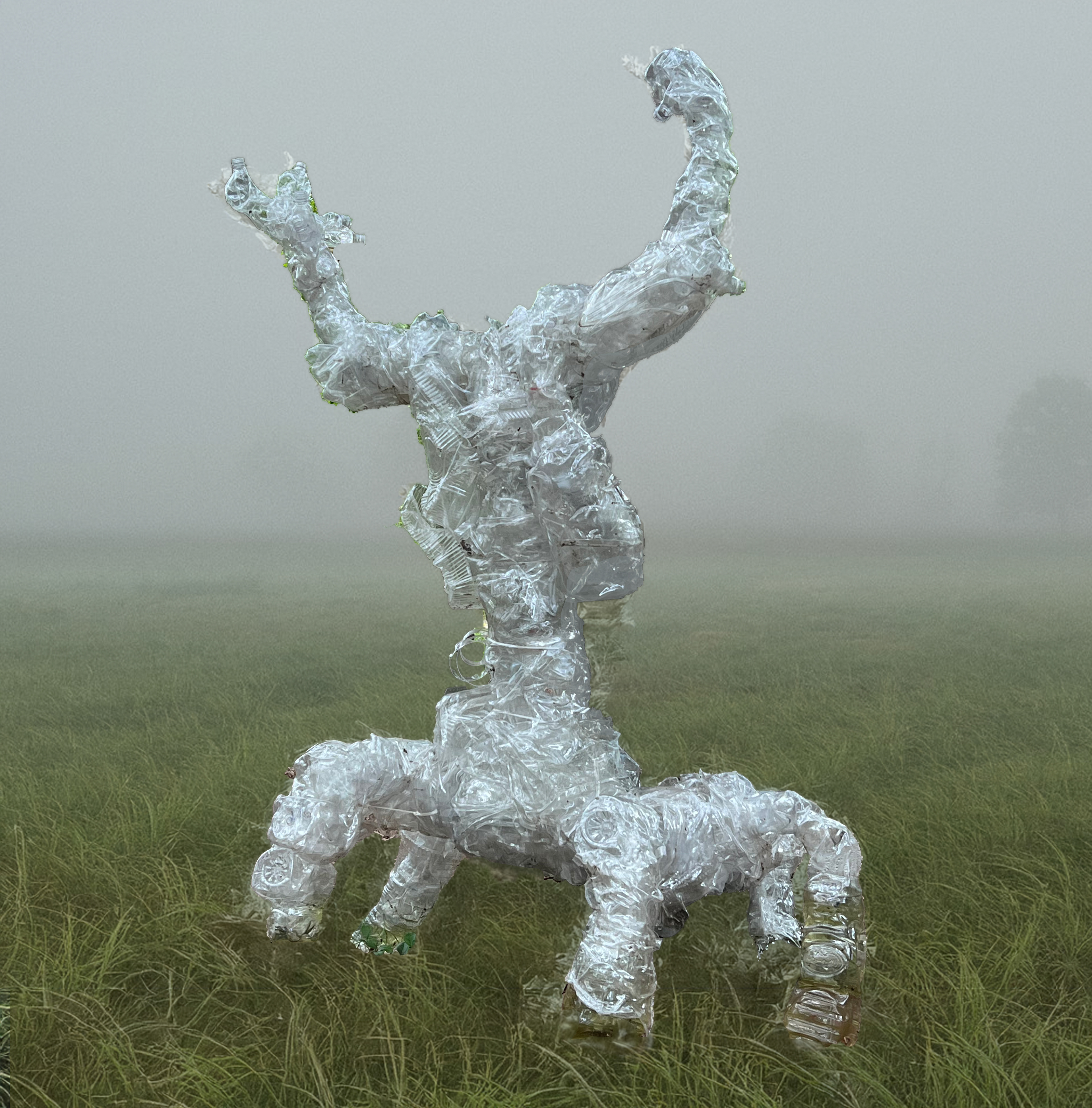 Composed from discarded plastic – matter saturating land and water – the figure is monumental yet infirm, unable to see, hear, or speak. Intended permanence dissolves into residue; what should have vanished remains. The work is both memorial and indictment, asking how cultures decide what deserves precious care and what becomes invisible even as it persists.
