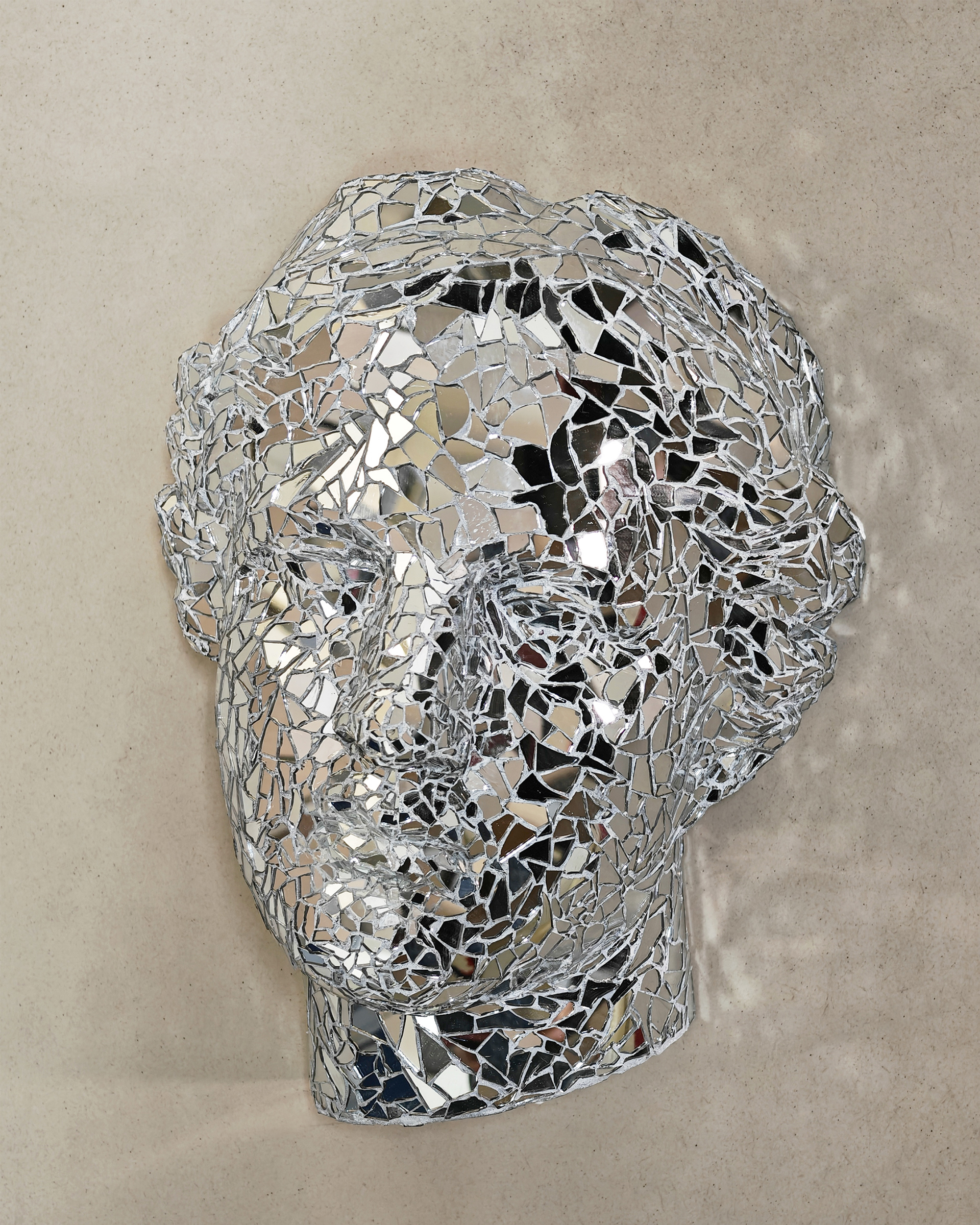2025, gypsum, mirror pieces, concrete, oil, 13 × 9.4 × 6.3 in (33 × 24 × 16 cm)